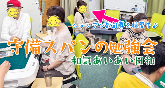 本日も守備スパンでしたが、ちょっと普通に打ち過ぎ感が否めないかも?もう少し『間四軒』『ノーチャンス』探しや、その牌を切れた理由等意見交換すれば良かったなと反省!次回は今スパンの最終日!積極的にリーチ者に間四軒内の牌を打ち込んで見ようっと、意外と通る物です!